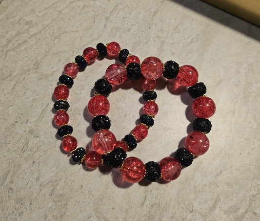 6-7" Pink/Black Bracelet Set