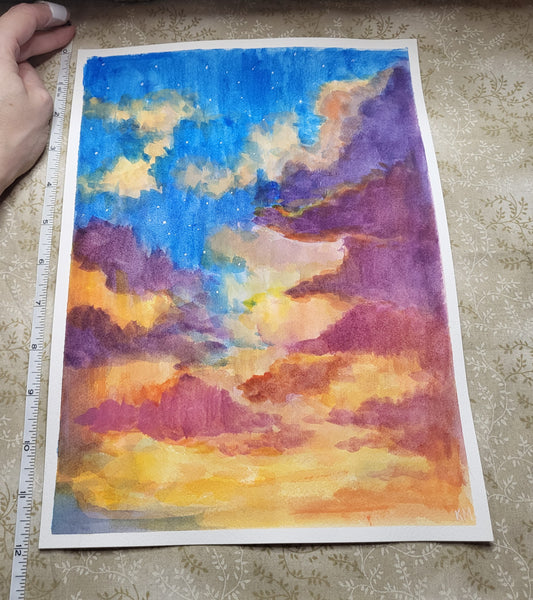 Sky Over Walmart Original 9x12 watercolor