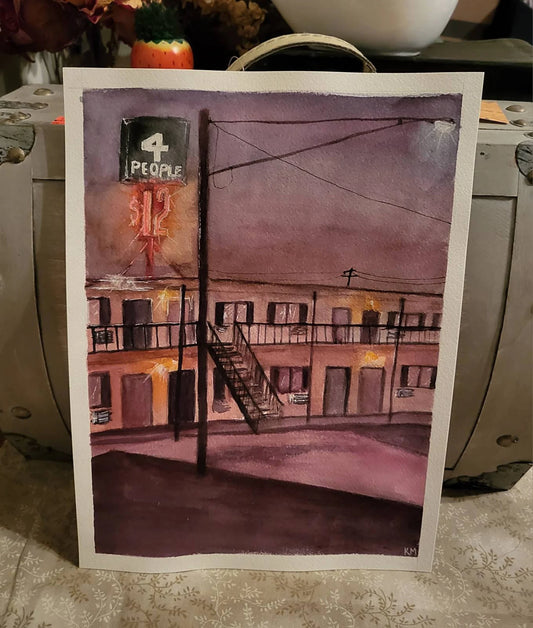 Motel Late Nights 9x12 watercolor