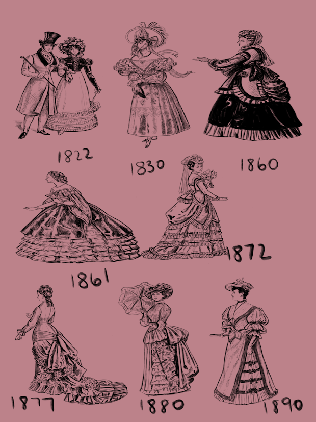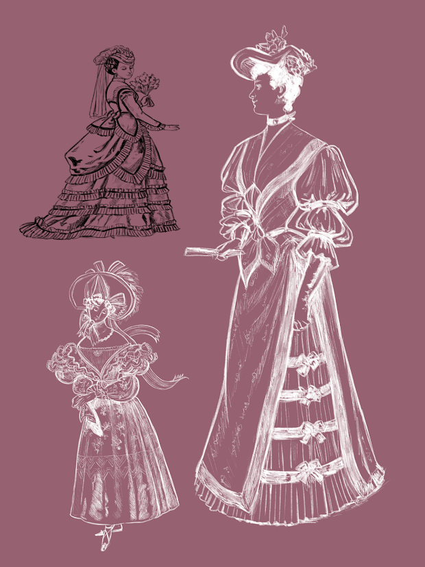 I'm branching out into making my own brushes for Procreate! This whole set was inspired by the annoyed feeling I get when I see someone use completely anachronistic images to bolster their booktok "historical" fiction or their misinformative yt videos. So here's some brushes I made from very real fashion plates from the Victorian era for anyone who can't tell the difference between the 1820s and the 1880s. Lets consider this my community service.