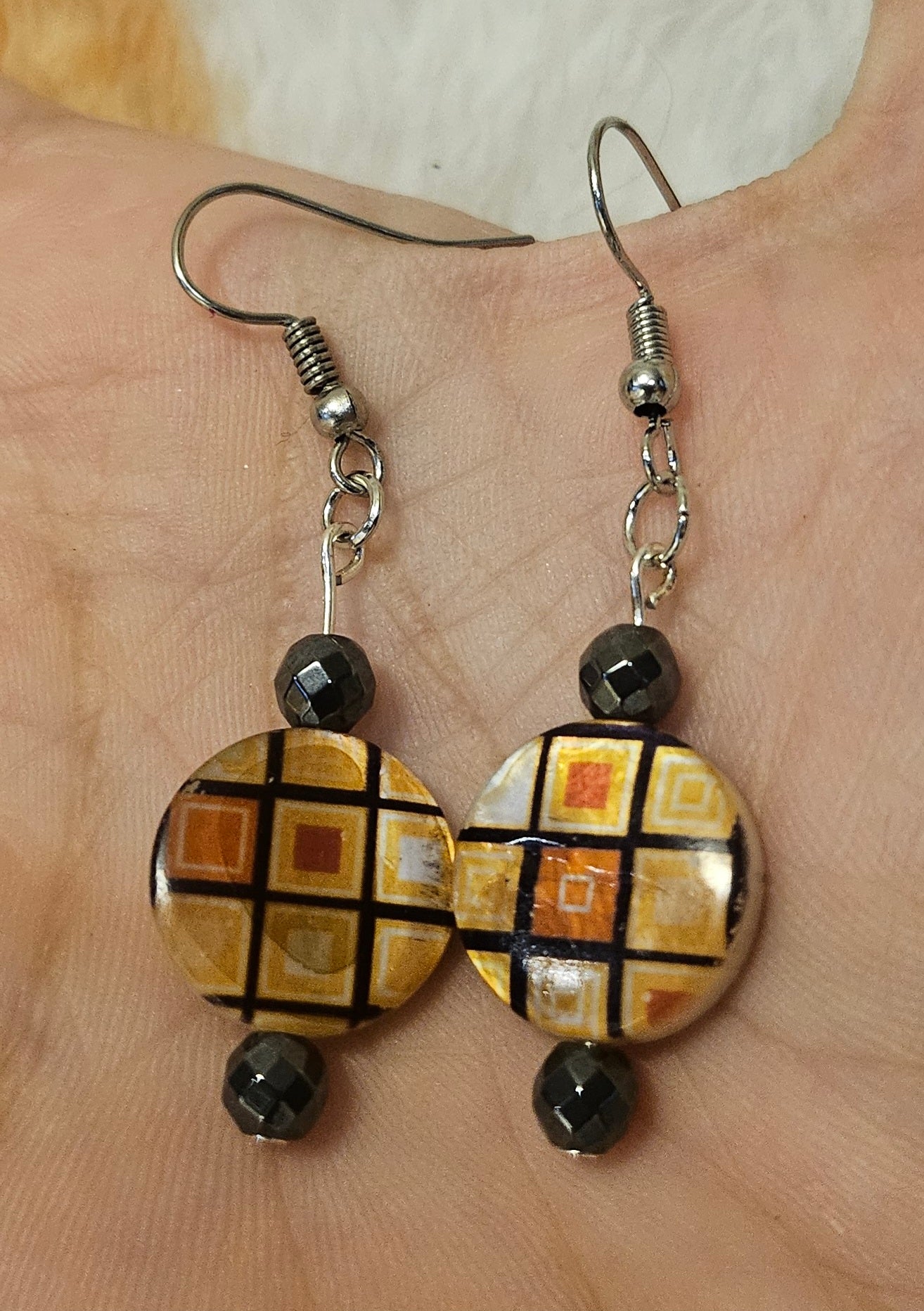 2" Checkered Abolone/Hematite Earrings