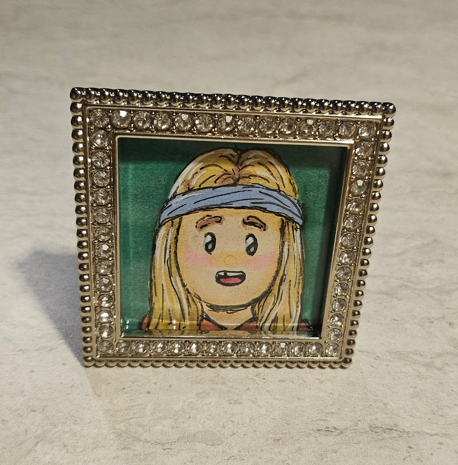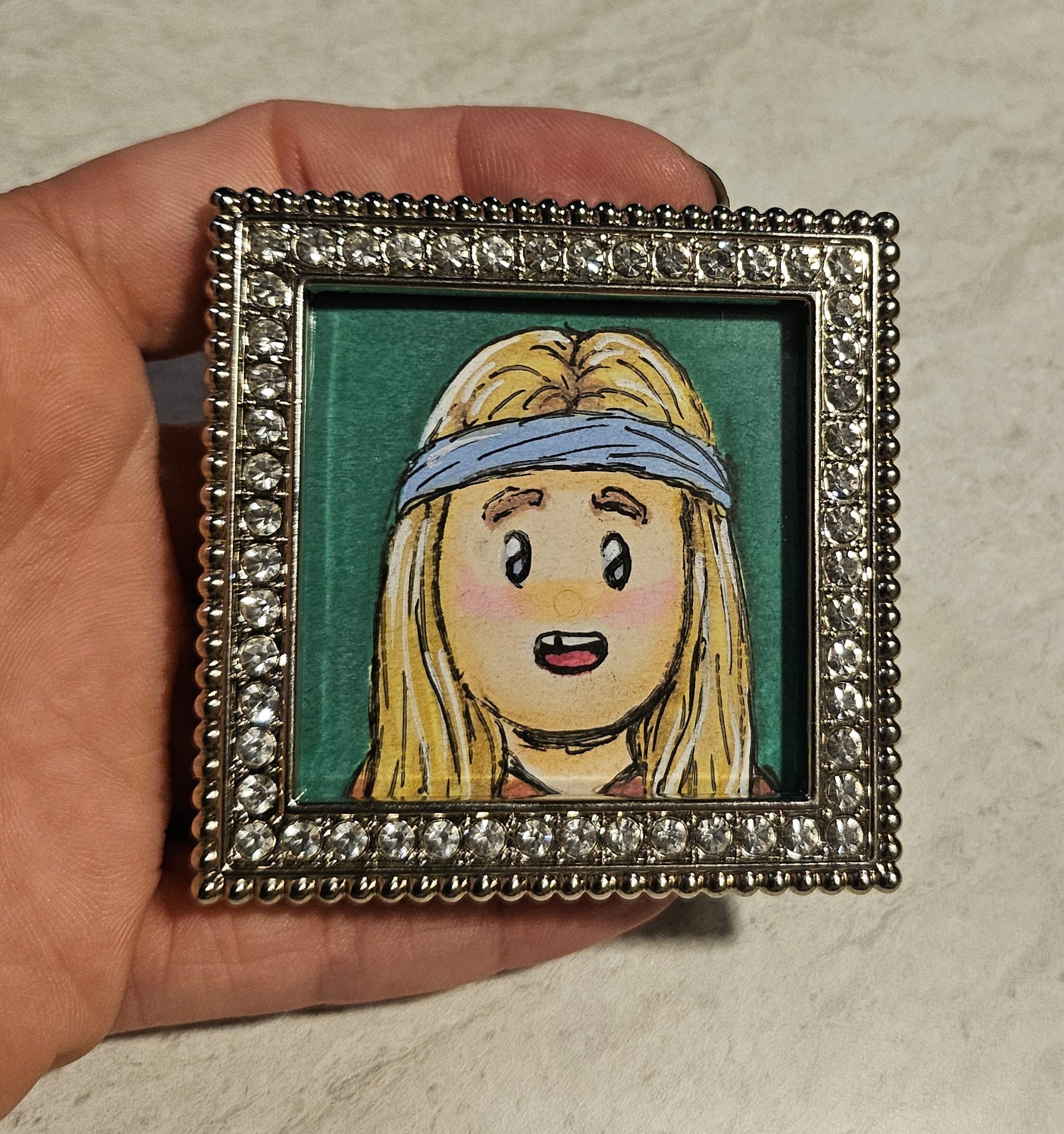 A 2x2 original chibi drawing of the Swede from OFMD in a 2.5×2.5 rhinestone standing frame.