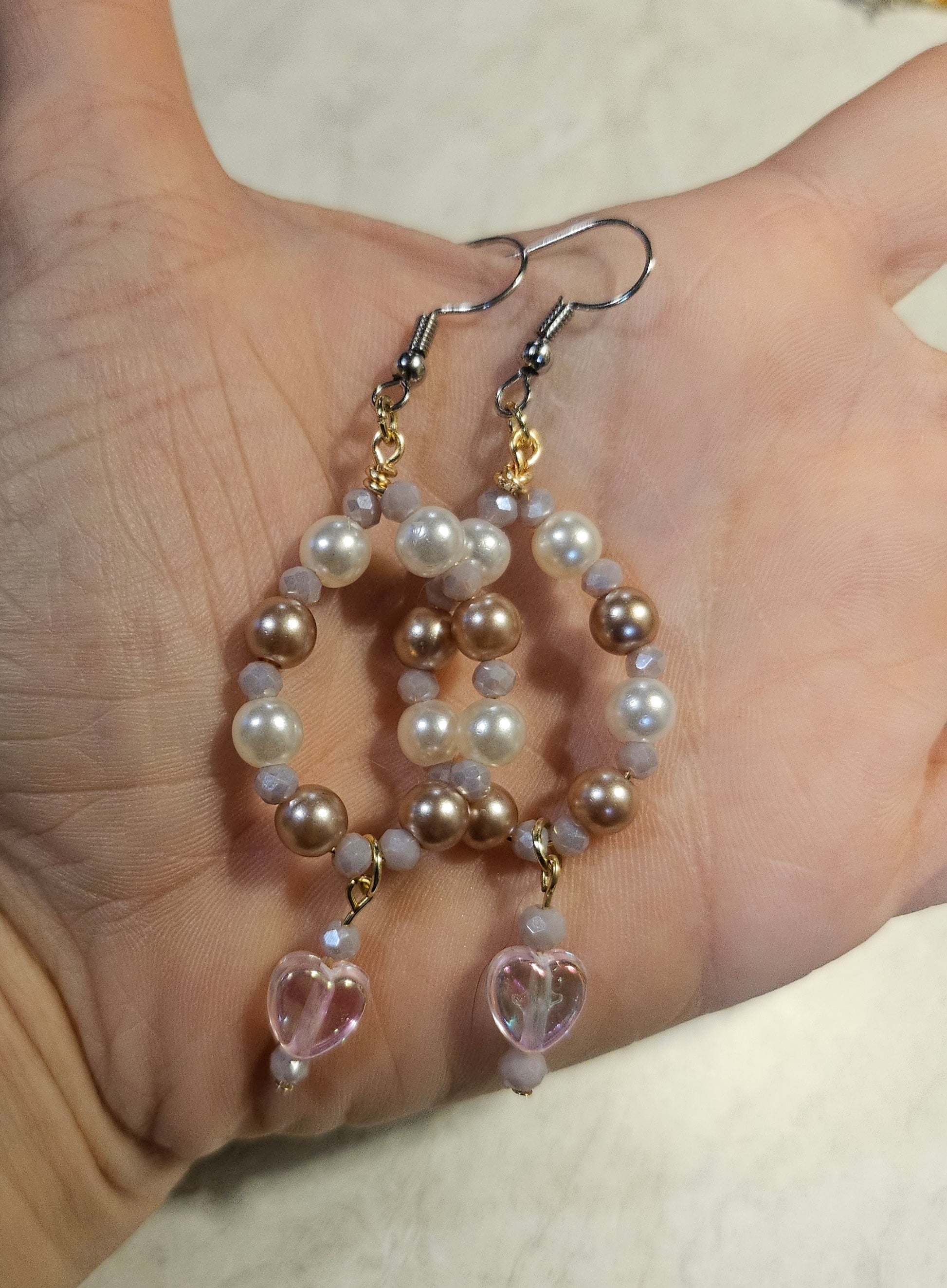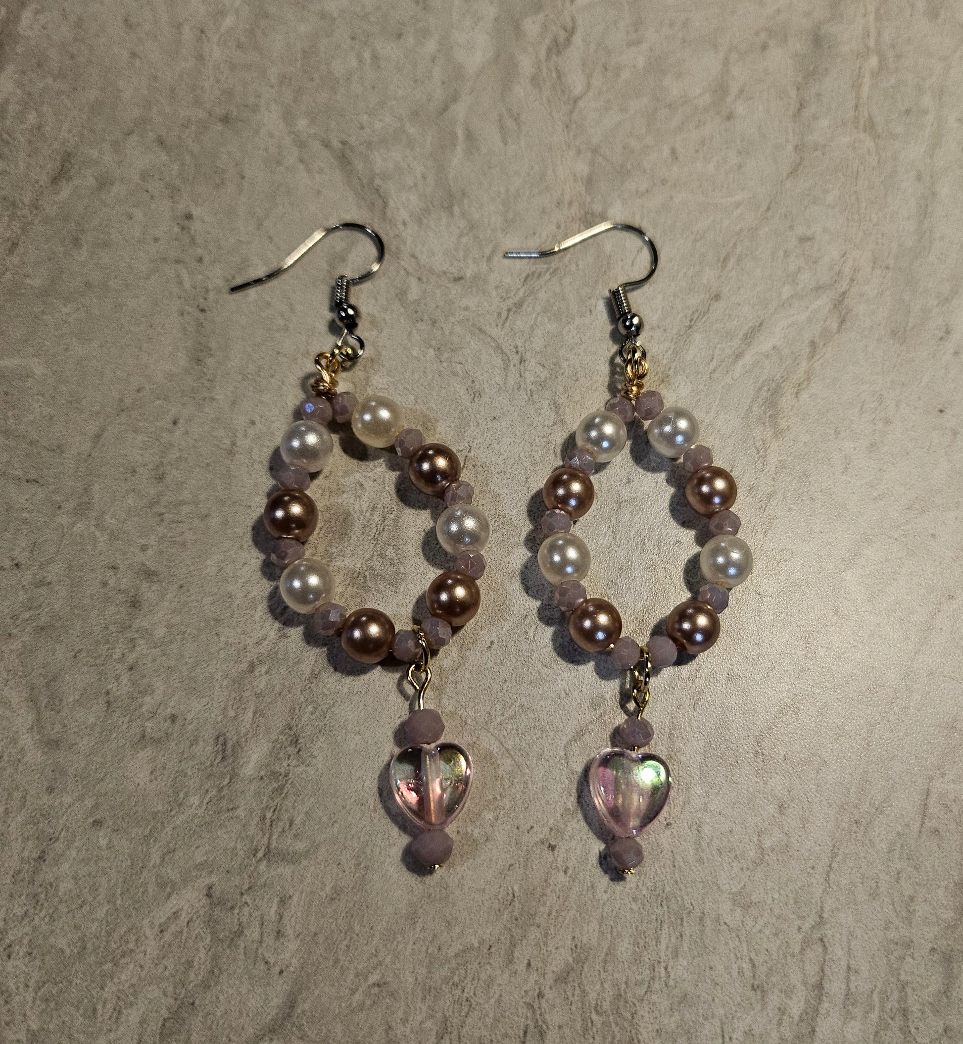 A pair of 3" fishook earrings made with glass and acrylic beads.