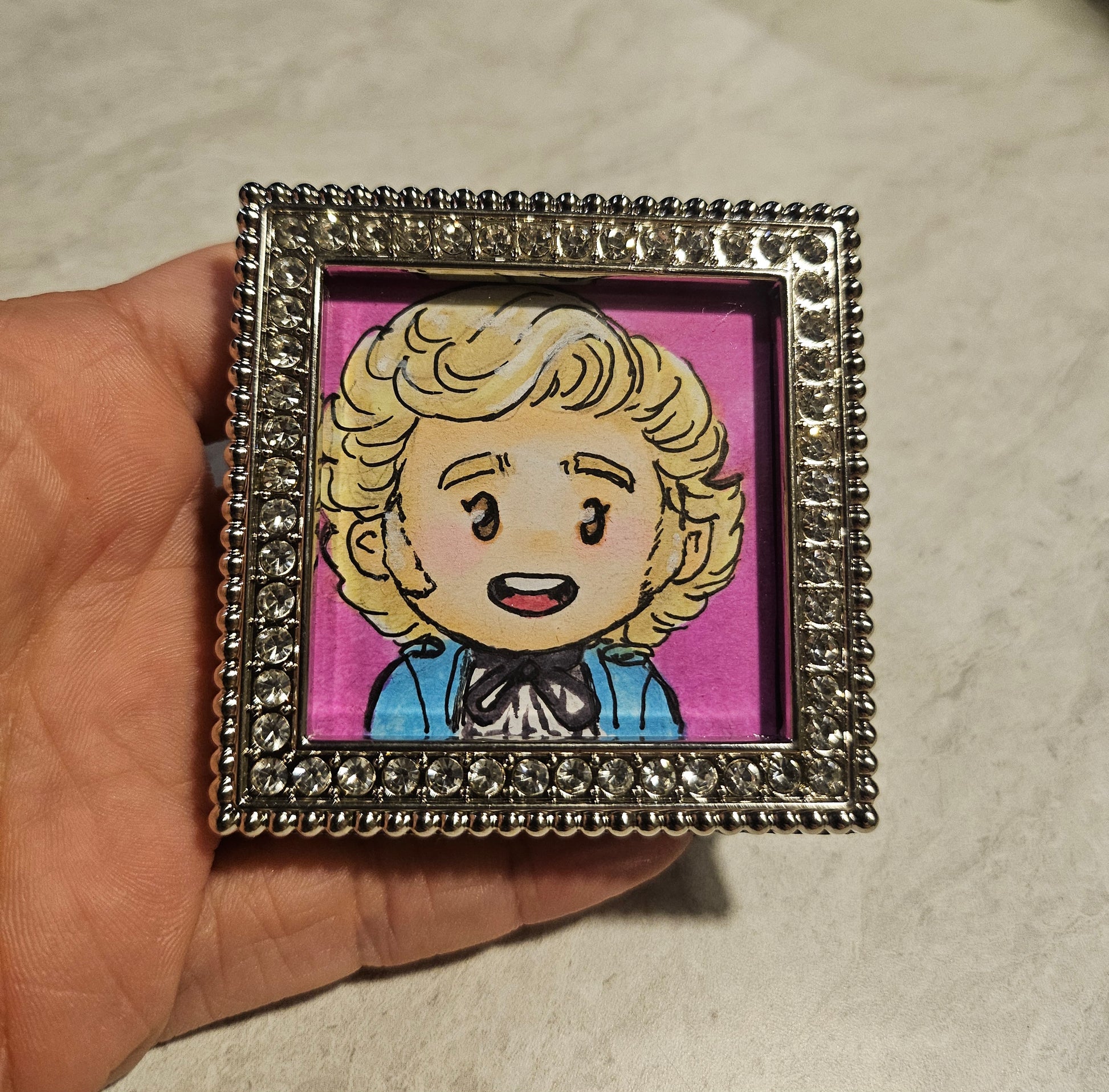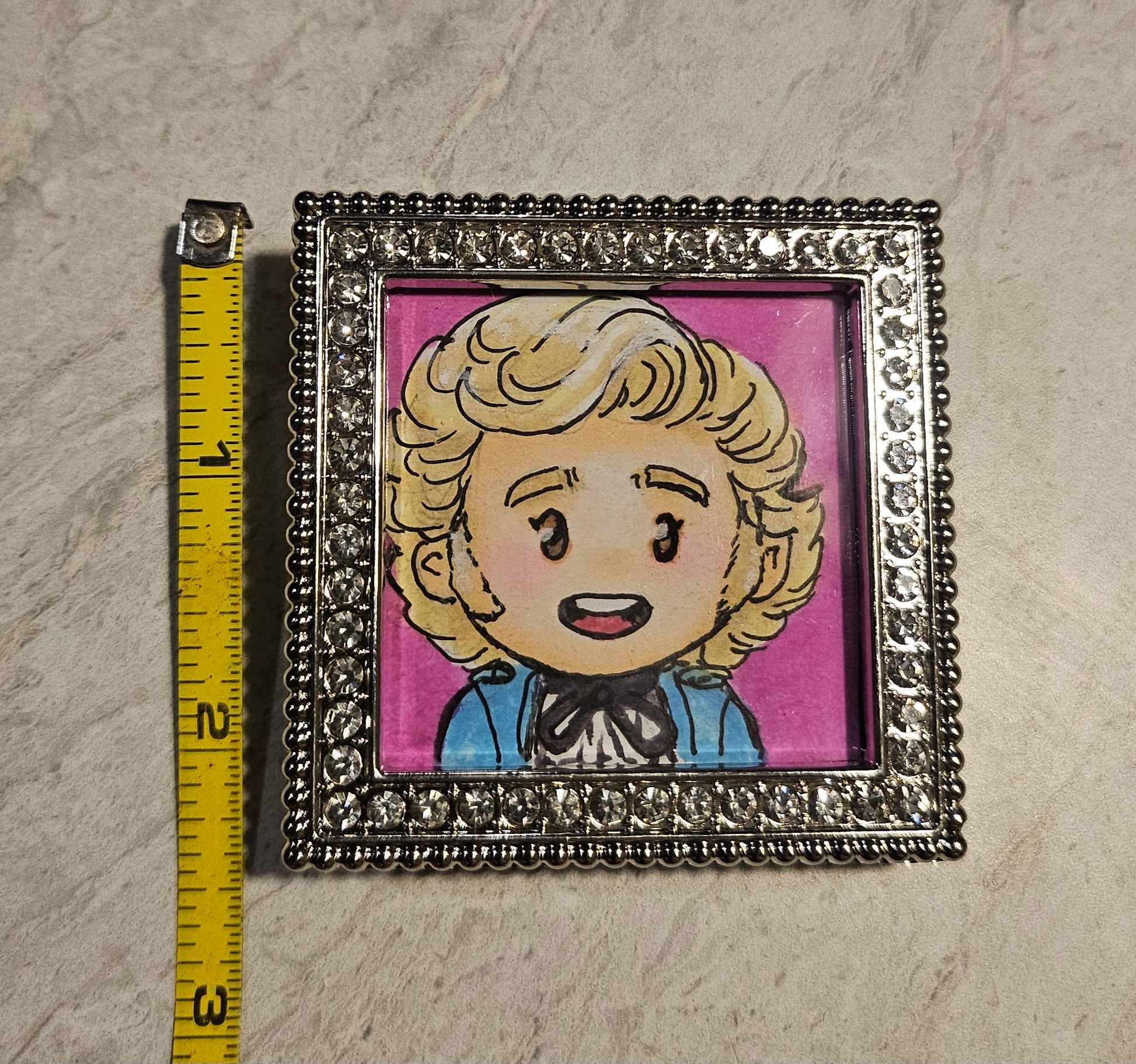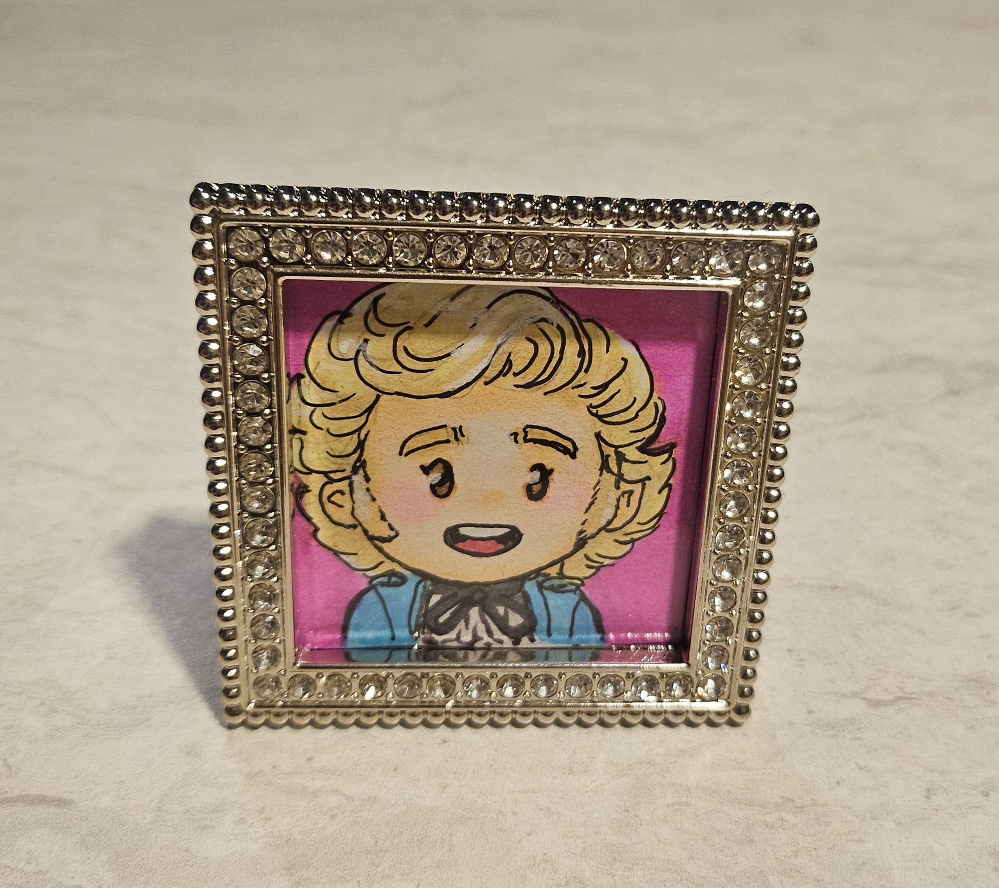 2x2 original chibi drawings of the crew from OFMD in a 2.5×2.5 rhinestone standing frame.