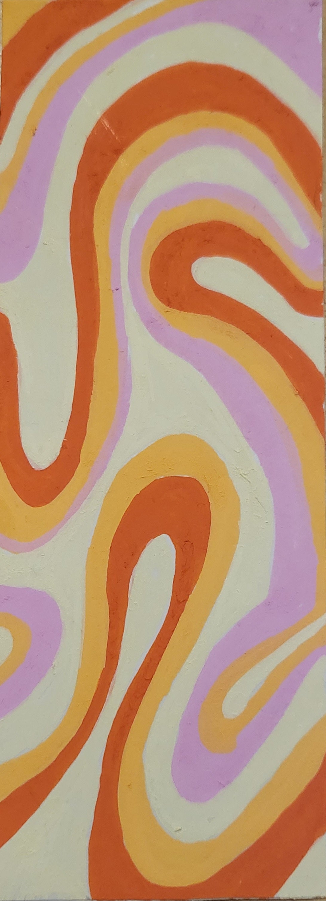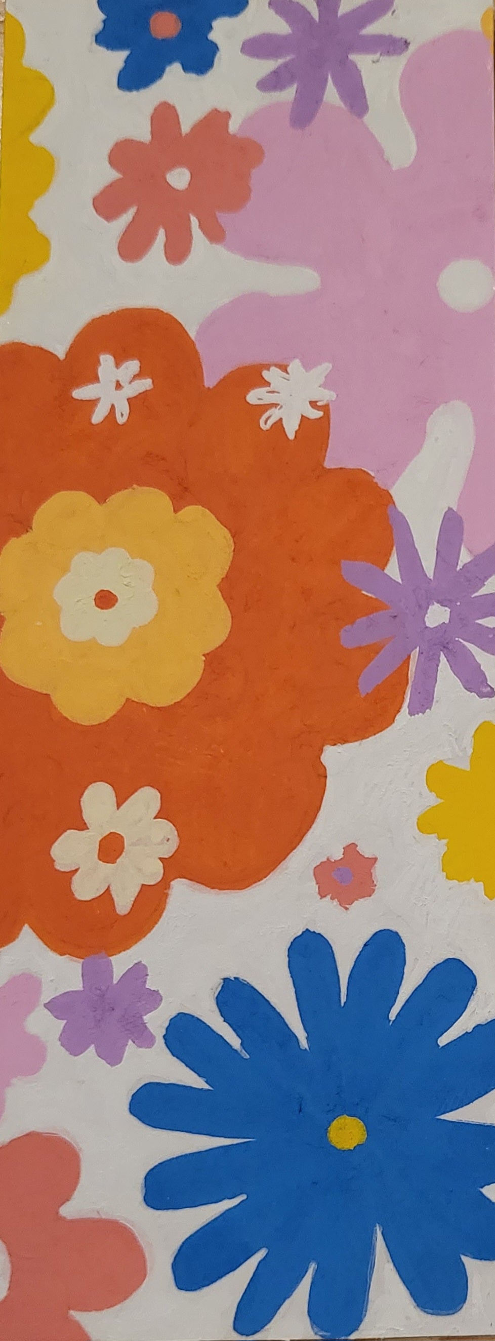Roughly 5"x7", decorated in a 60's motif on both sides, and comes with a matching bookmark.