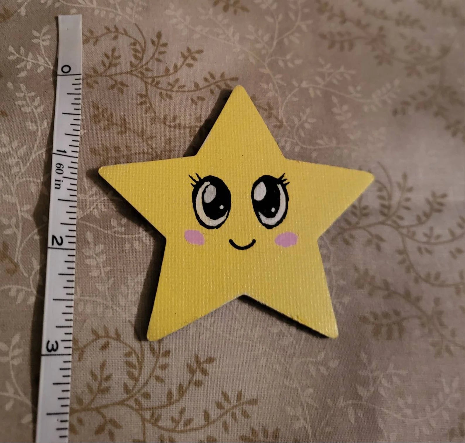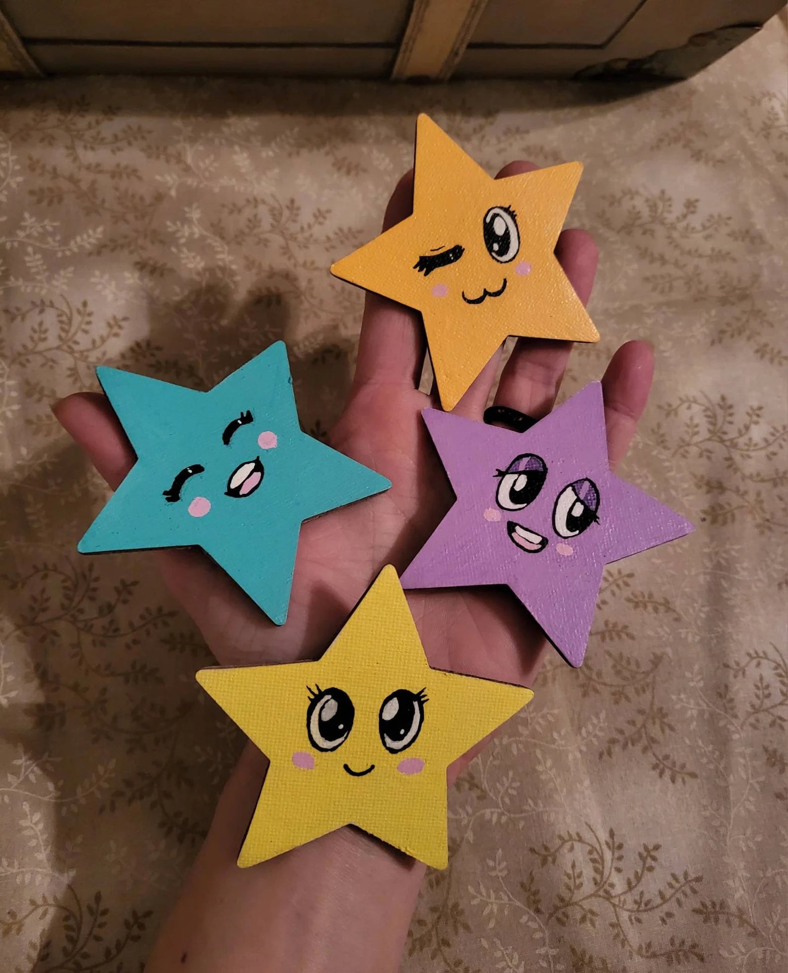 A 4 piece set of magnets in pastel colors, each has a unique face. Done in POSCA paint markers and sealed with modpodge.