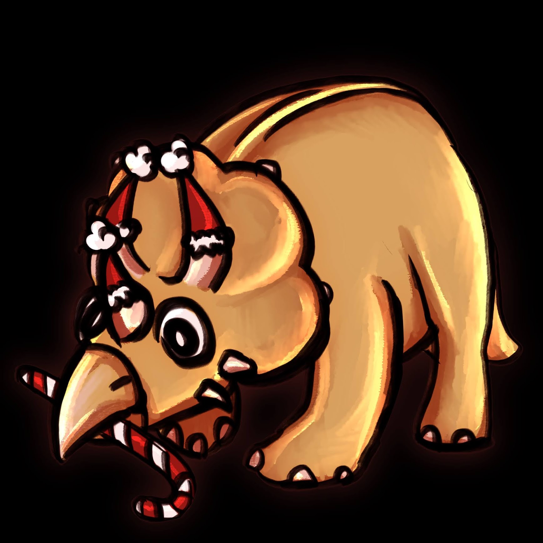 A sweet lil fella with candy cane for you! Each triceratops measures about one and a quarter inch tall and is covered with a holographic holly and bow laminate.